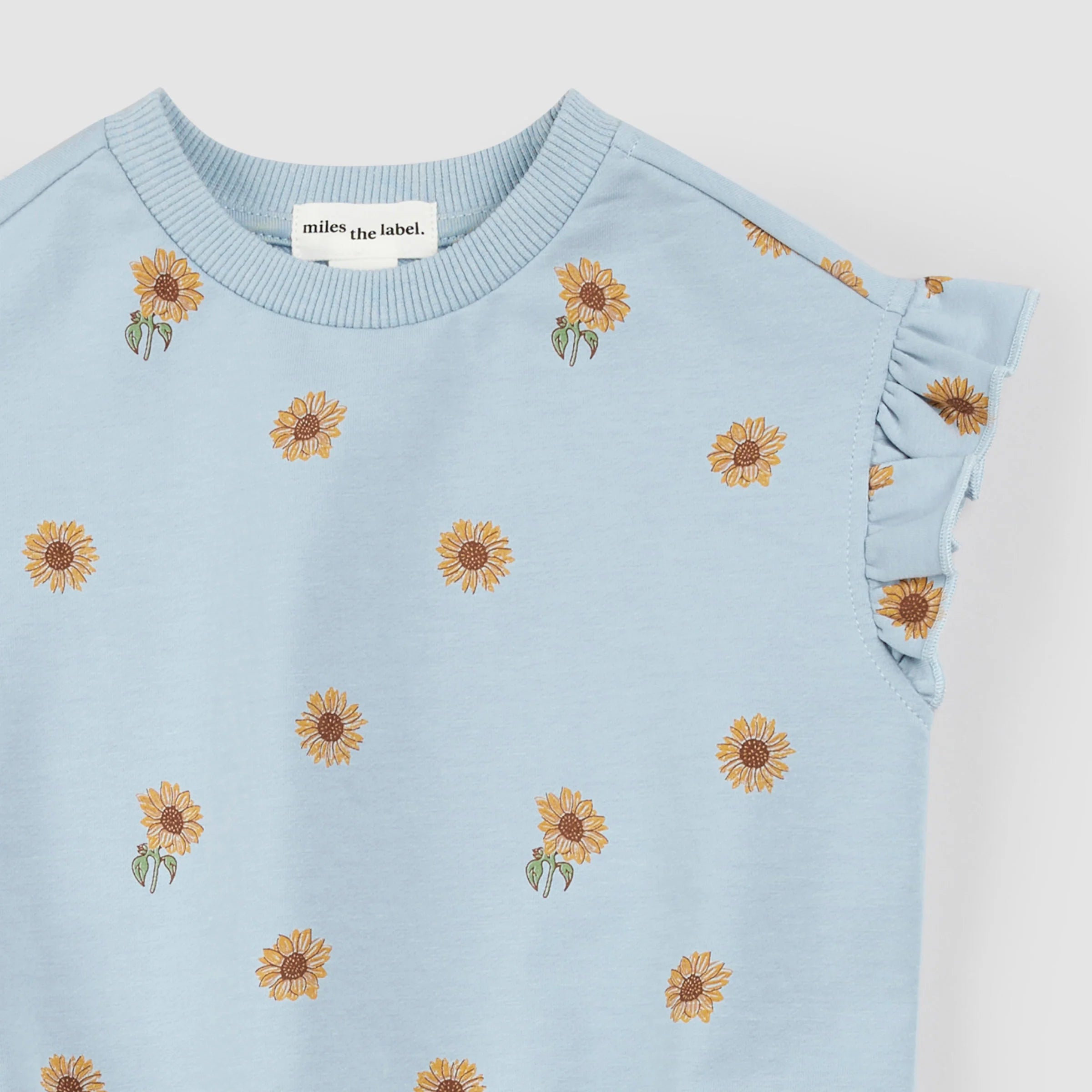 Perfect for summer days, this sweet top features an all over Sunflowers print and has a relaxed fit for kicking back in the yard. Made from a comfortable blend of organically grown cotton and a little elastane, the top is flexible and freeing, so nothing gets in the way of her having a great day. The flutter sleeves mirror the frilly trim on the shorts from the same range, creating the perfect outfit choice for a family day outdoors.