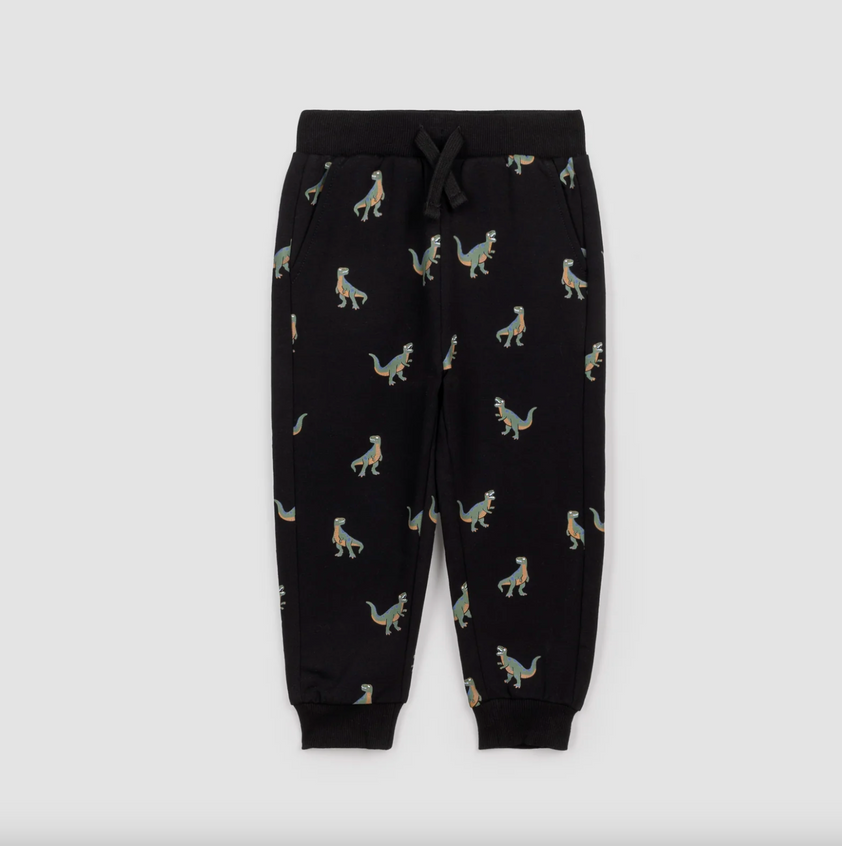 These playful joggers are made from an organic cotton French Terry and feature an all over T-Rex print. The cozy joggers are perfect for a casual outfit choice in the cooler months. The joggers are fitted with an elasticated waistband, drawstring tie and pockets on either side for a completely cool style.