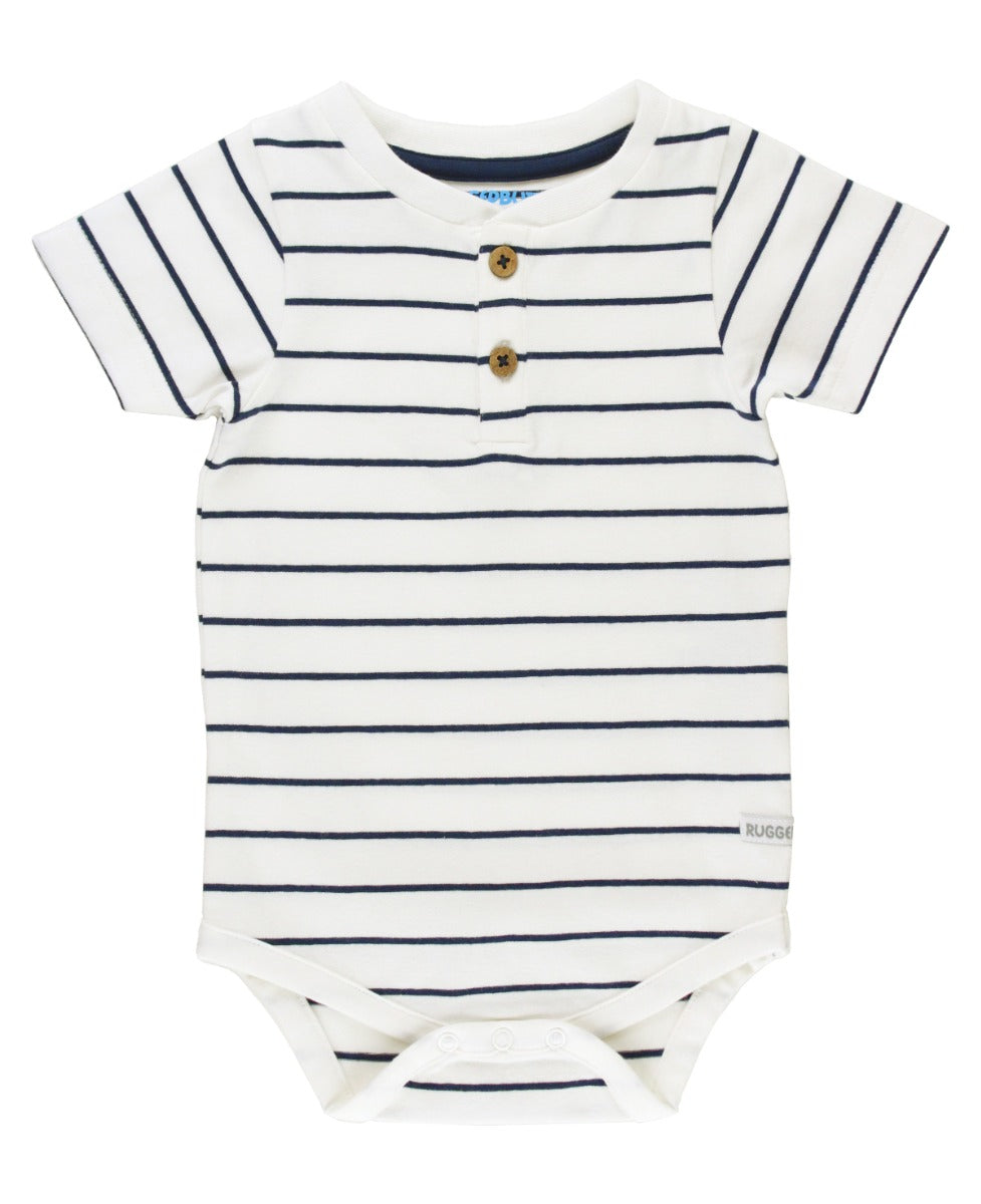 White & Navy Stripe Short Sleeve Henley Bodysuit
